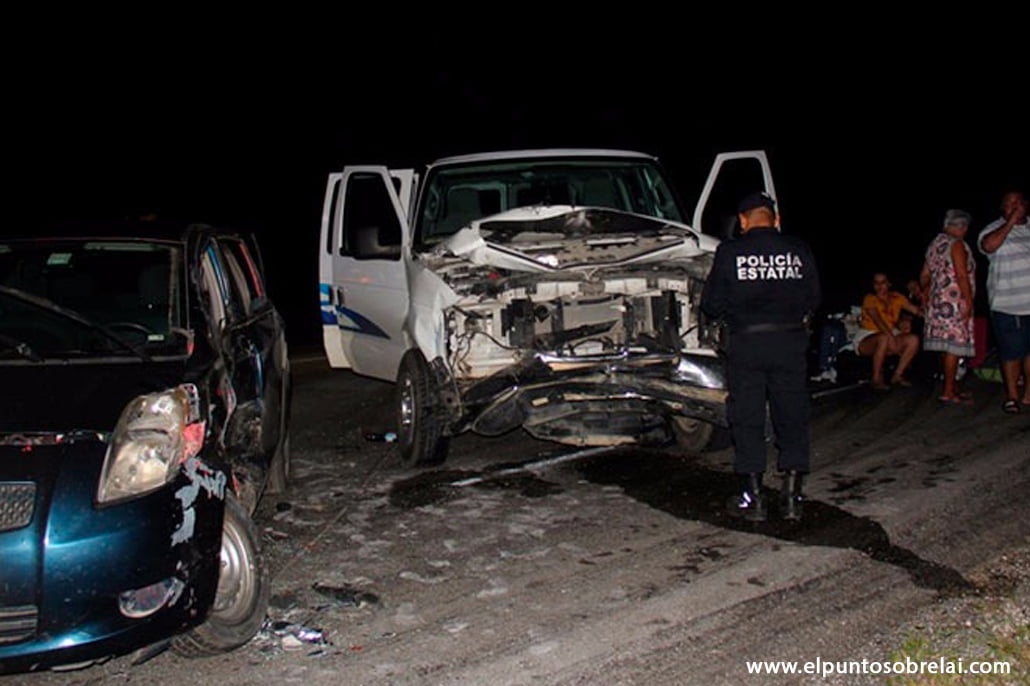 One of the chaperones told Ambergris Today that it was on their way back to Chetumal that the Toyota car came speeding out of a dirt road and collided with their van before their driver could do anything to avoid the impact. They say that the other driver appeared to be drunk and escaped from the scene of the accident, leaving his injured passengers behind. The three injured persons were from the blue Toyota received medical attention from the Red Cross Paramedics from Felipe Carillo Puerto and rushed by ambulance to a nearby hospital. Both vehicles were towed to a federal pound yard.