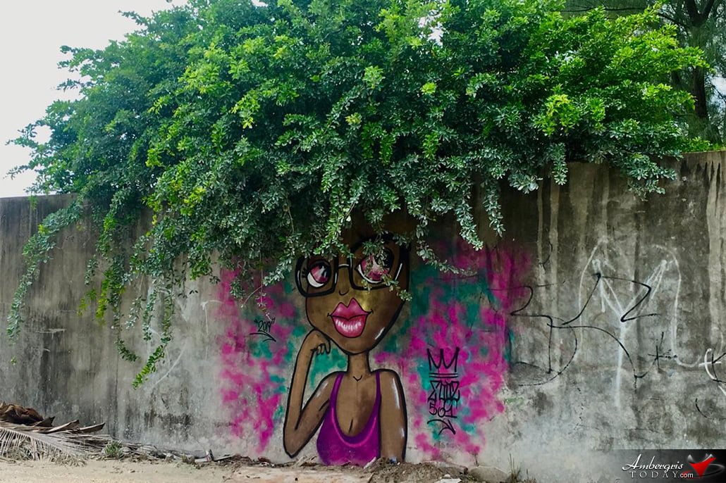 Headed down south or at Caye Coffee for some fresh coffee? Then you will be greeted by this awesome graffiti on the wall. There have been several murals going up in town lately as many local businesses are sprucing up their walls and graffiti art seems the way to go! Artists have been expressing their amazing talent and this one does not fail to impress! Afro Girl Graffiti done by island artist Elvis Eddie Aldana (Eddz 501) and Karen Gonzalez.