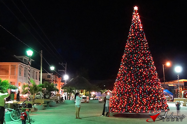 A 25-foot tall Christmas Tree adorns Central Park as the San Pedro Town Council has started decorating the town for Christmas. The tree boasts 1, 840 feet of string lights that cover the entire