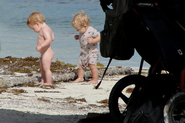 No this is not another Baby commercial for pampers cruisers, but simply two lovely babies brought to the island for vacationing for the first time. As you can see, they are taking their first