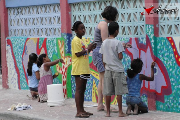Happy Children gathered with Liza Mills (once again!) and her crew to repaint a brand new art design for the San Pedro Roman Catholic School’s fence. The design is a tribute to the Barrier