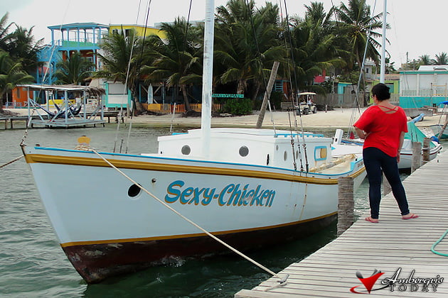 Who’s that sexy chicken? Well if you are in the neighboring island of Caye Caulker you can find the sailing boat named the ‘Sexy Chicken”. Delsie could not resist taking a picture alongside the